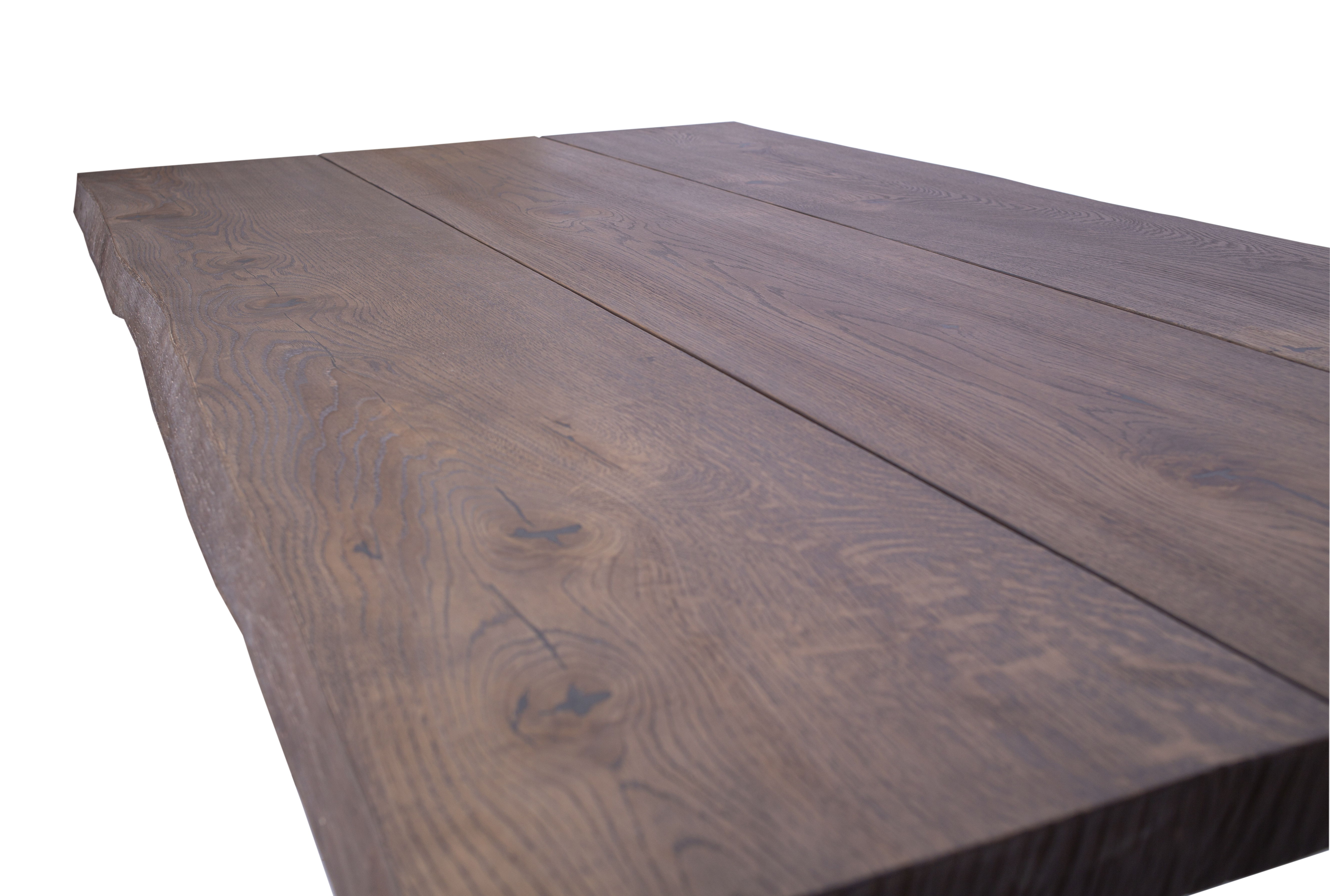 Столешница изготовлена из инженерного массива, представляет собой комбинацию древесины дуба и ольхи с формой кромки (02) — наклон 35°. Толщина столешницы составляет 50 мм, тип покрытия — акрил-полиуретановый матовый лак.<br>