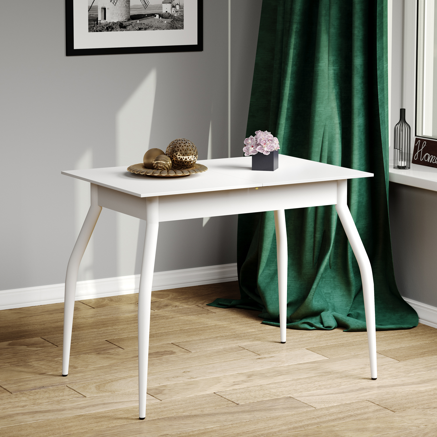Стол кухонный раздвижной DecoLine-1 900(1200)*600мм ноги 01 белые (Белый) отлично подойдет для интерьеров в стиле Модерн.