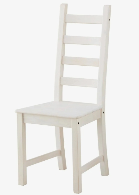 Стул изготовлен из массива сосны. Дерево пропитано морилкой и покрыто прозрачным акриловым лаком.